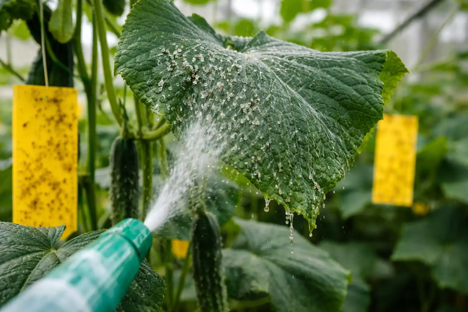 Ocet może powodować oparzenia delikatnych liści ogórka, dlatego lepiej zastąpić go słabym roztworem mydła do prania.