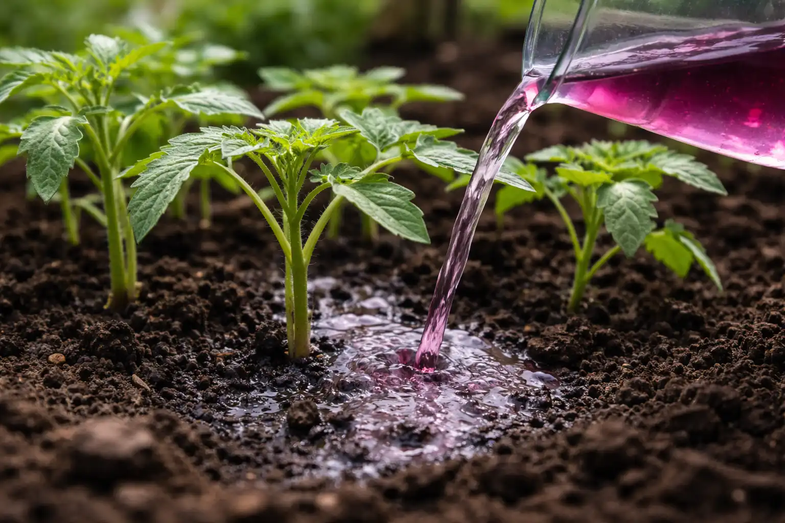 Należy używać tylko słabego różowego roztworu, ponieważ wysokie stężenia mogą powodować oparzenia korzeni.