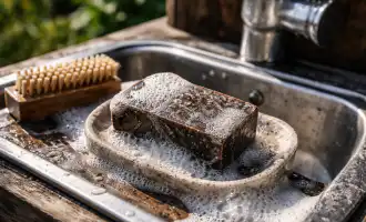 Wymieszać stromą wrzącą wodę z niewielką ilością octu stołowego.