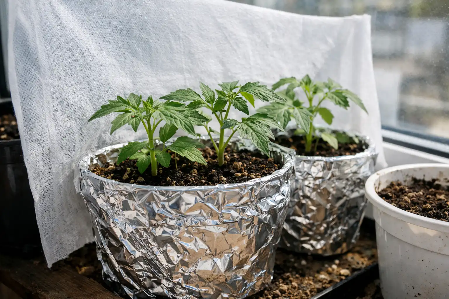 Owiń doniczki zwykłą folią lub białym papierem, aby odbić promienie.