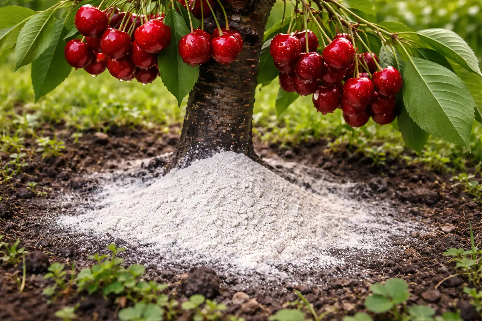 Sekretny niuans: jeśli wiśnia masowo zrzuca zielone jajniki wielkości grochu, prawie zawsze brakuje jej wapnia. Dolomitka wypełnia ten deficyt lepiej niż jakikolwiek płynny nawóz.