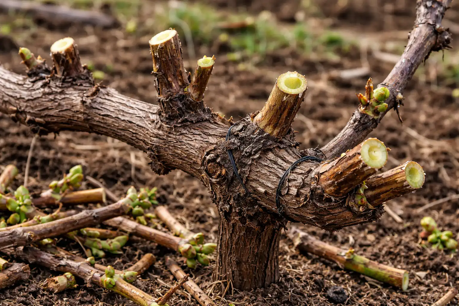 Przycinanie wiosną pozwala dokładnie ocenić stan winorośli po zimie i dostosować obciążenie.