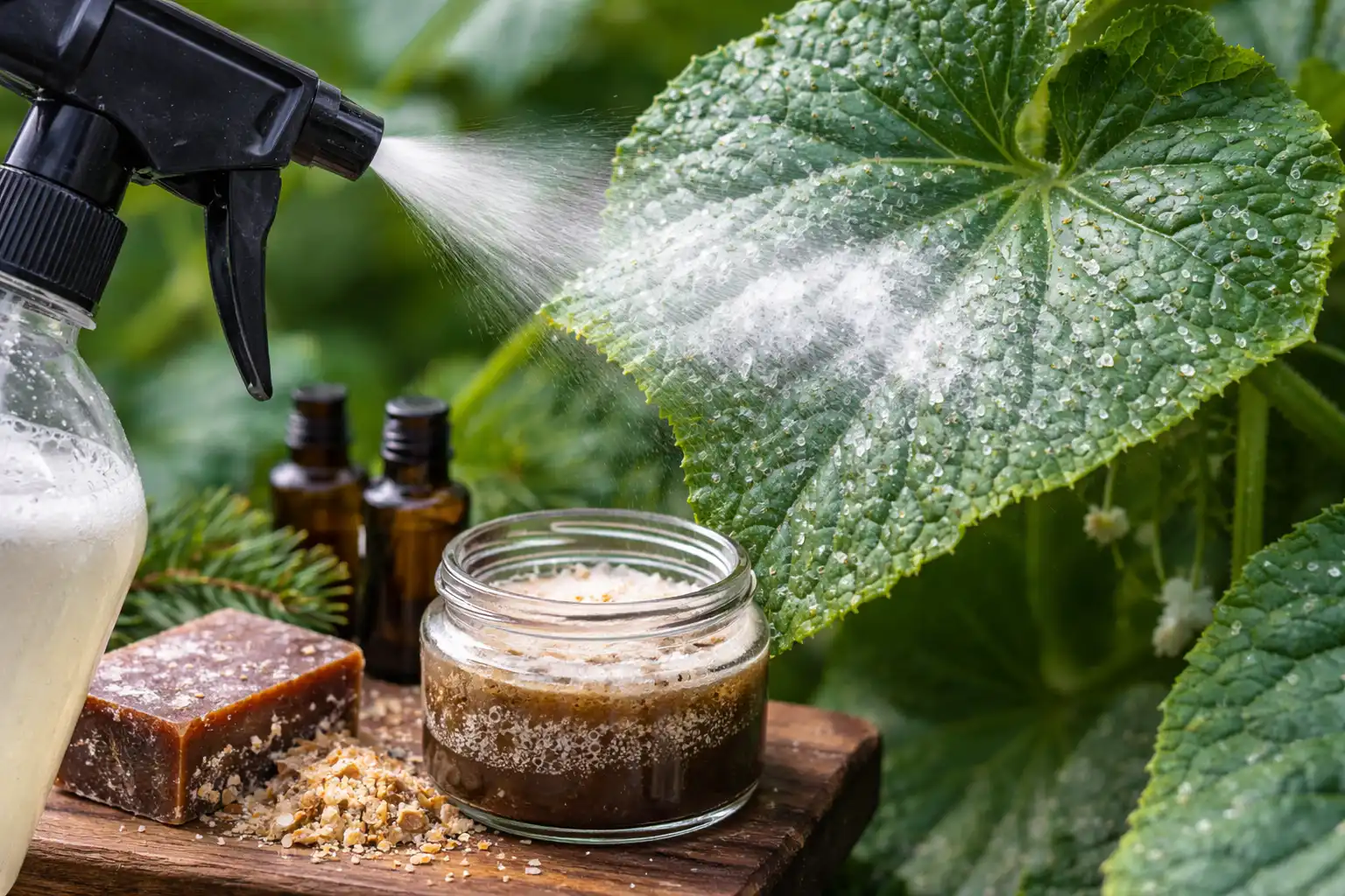 Sekretny niuans: aby upewnić się, że roztwór nie spłynie z gładkich liści ogórka, ale pozostanie na nich, należy dodać do mieszanki łyżkę zwykłego oleju roślinnego. Stworzy to cienką warstwę, przez którą larwy nie będą mogły oddychać.