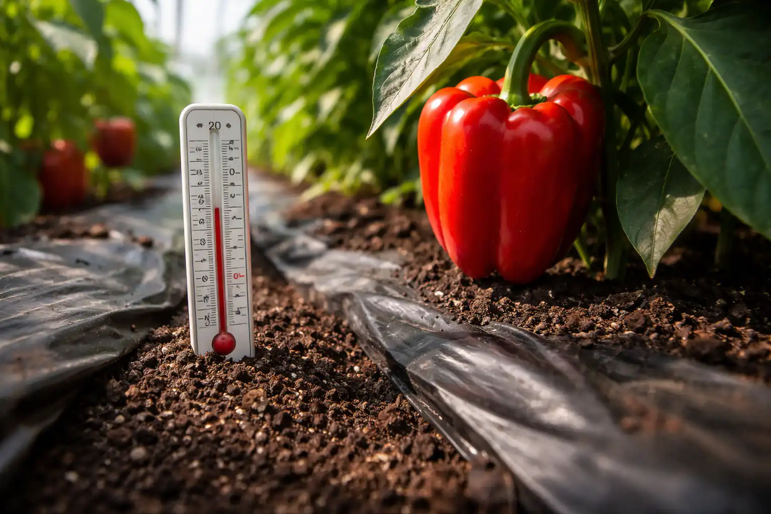 Główny warunek kształtowania duża papryka – to ogrzana gleba. Papryka jest niezwykle wrażliwa na zimno w strefie korzeniowej. Jeśli ziemia jest zimna, korzenie przestają trawić fosfora roślina zmienia kolor na niebieski, hamując rozwój przez dwa do trzech tygodni.