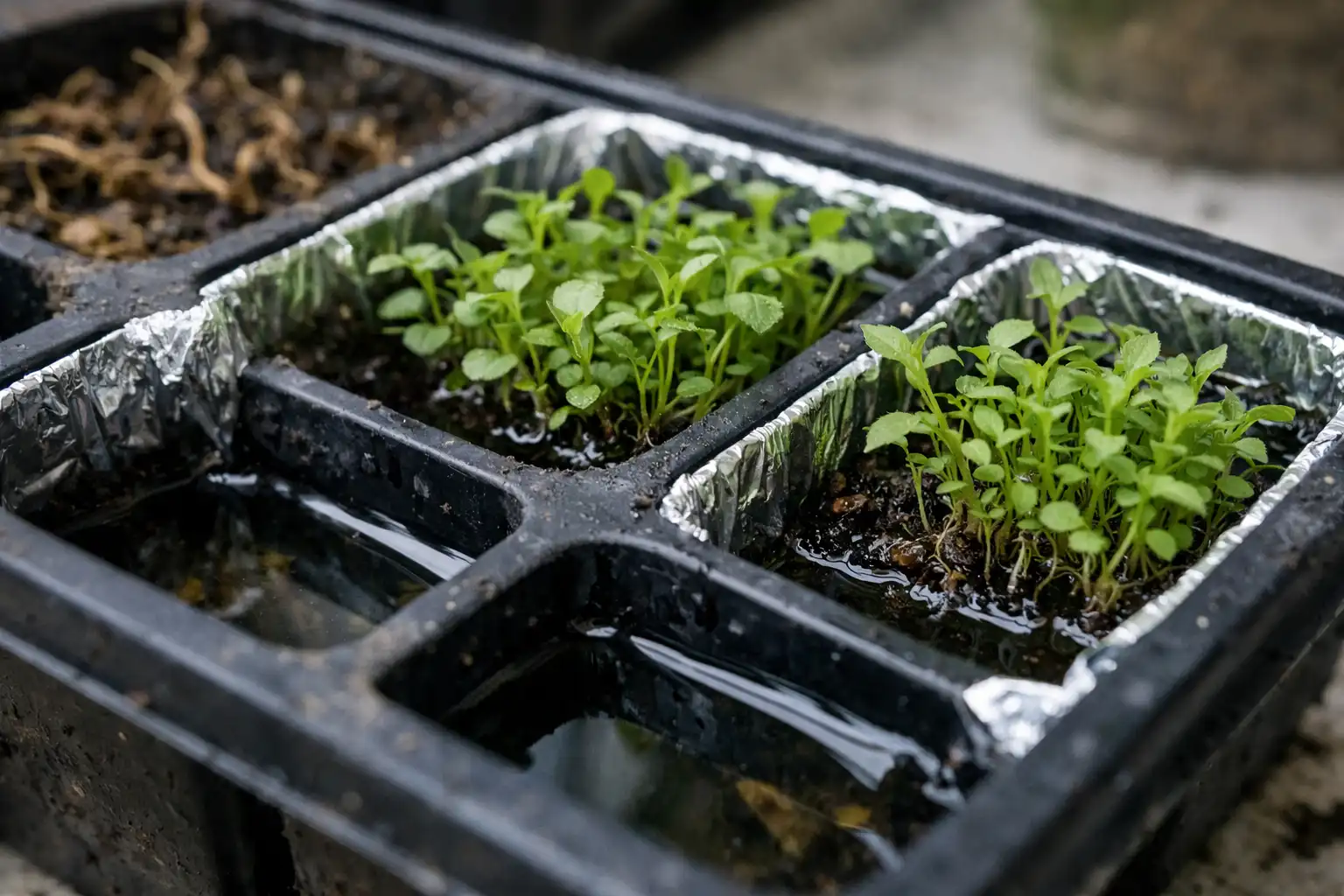 Prawidłowy reżim temperaturowy i kontrola wilgotności w tacy gwarantują zachowanie bujnych krzewów do momentu przesadzenia do doniczek.