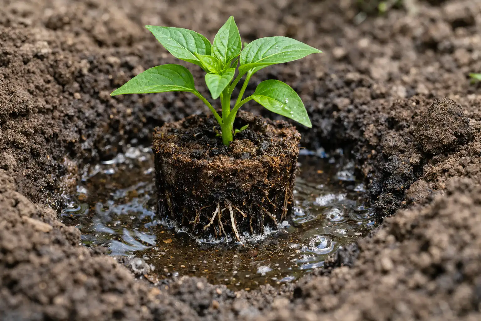 Właściwe przygotowanie miejsca sadzenia i kontrola temperatury gleby gwarantują przetrwanie roślin papryki. Zdrowa roślina powinna mieć ciemnozielony kolor i elastyczną łodygę trzy dni po przesadzeniu.
