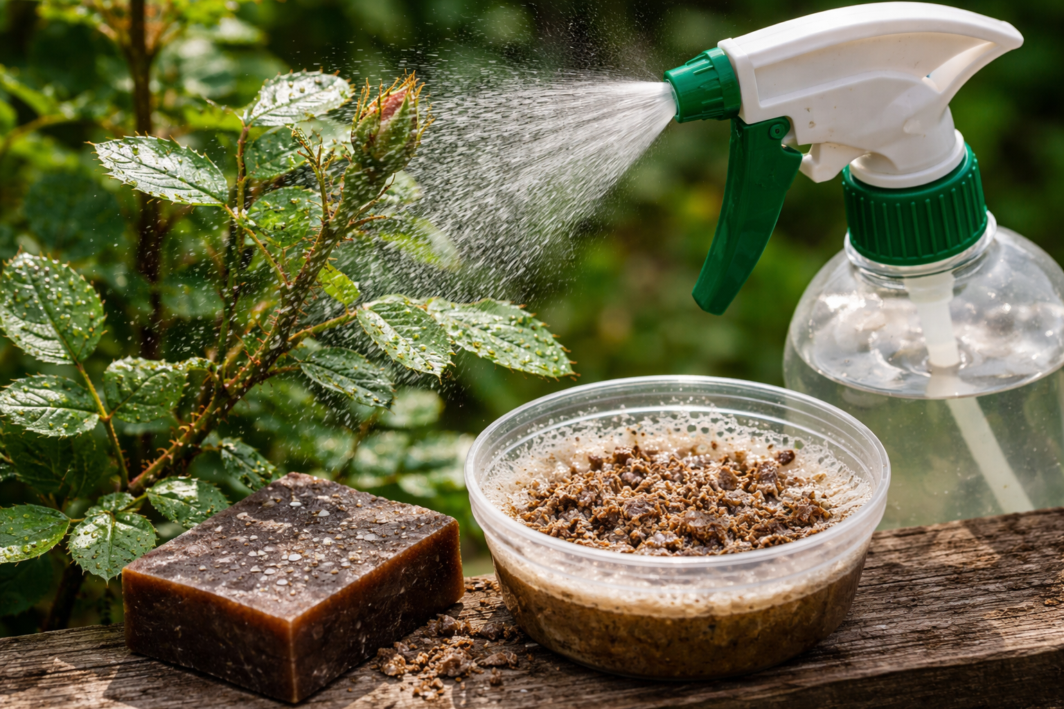 W ogrodzie używam roztworu mydła jako bazy do oprysków. Aby przygotować mieszankę roboczą, należy zetrzeć ją na tarce mydło smołowe i rozpuścić w ciepłej wodzie do uzyskania jednorodnej emulsji.