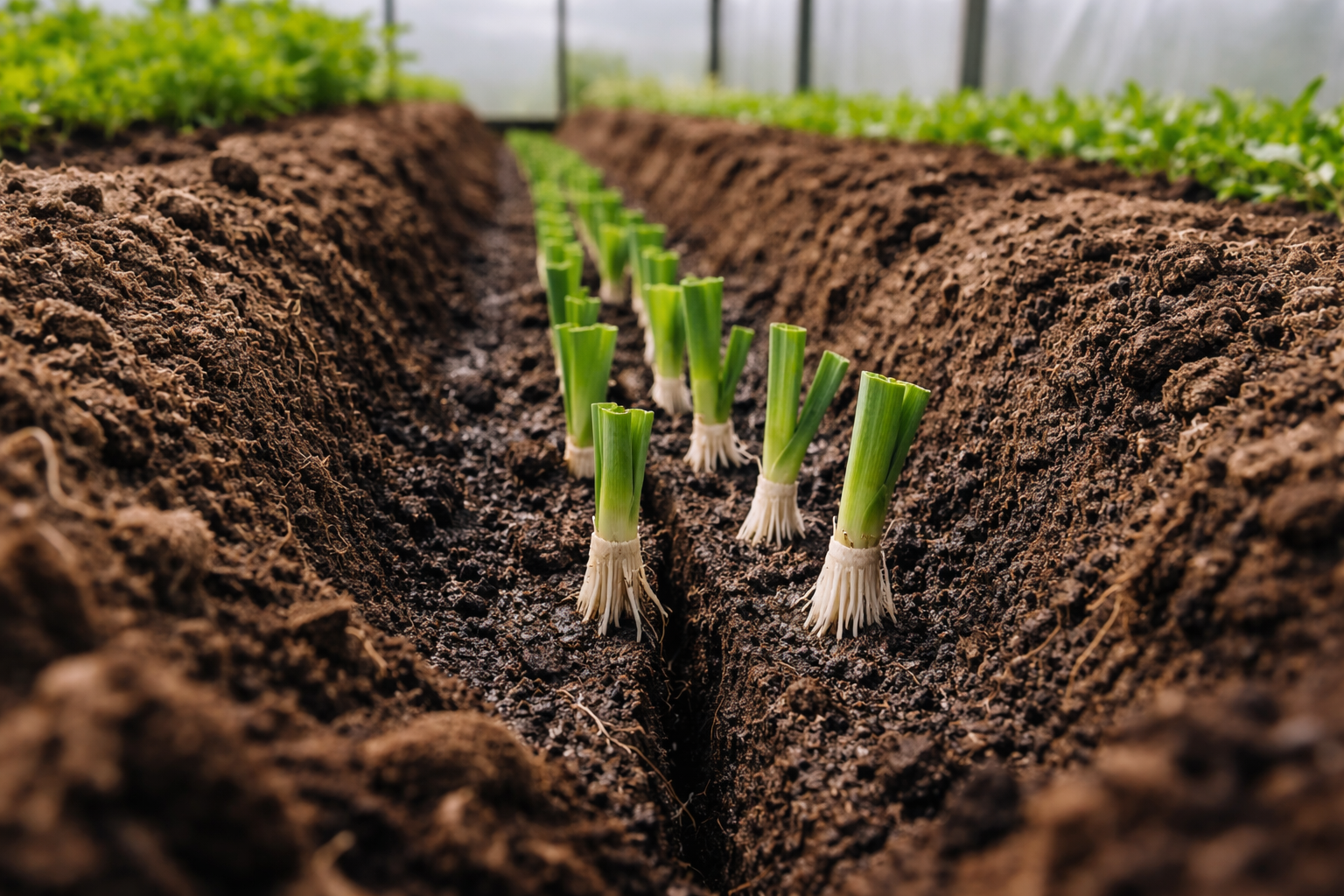 Pory potrzebują luźnego podłoża o wysokiej zawartości substancji organicznych, aby nabrać masy. W szklarni gleba nagrzewa się szybciej, ale po zimie często jest sucha. Przed sadzeniem należy nawodnić grządki ciepłą wodą.