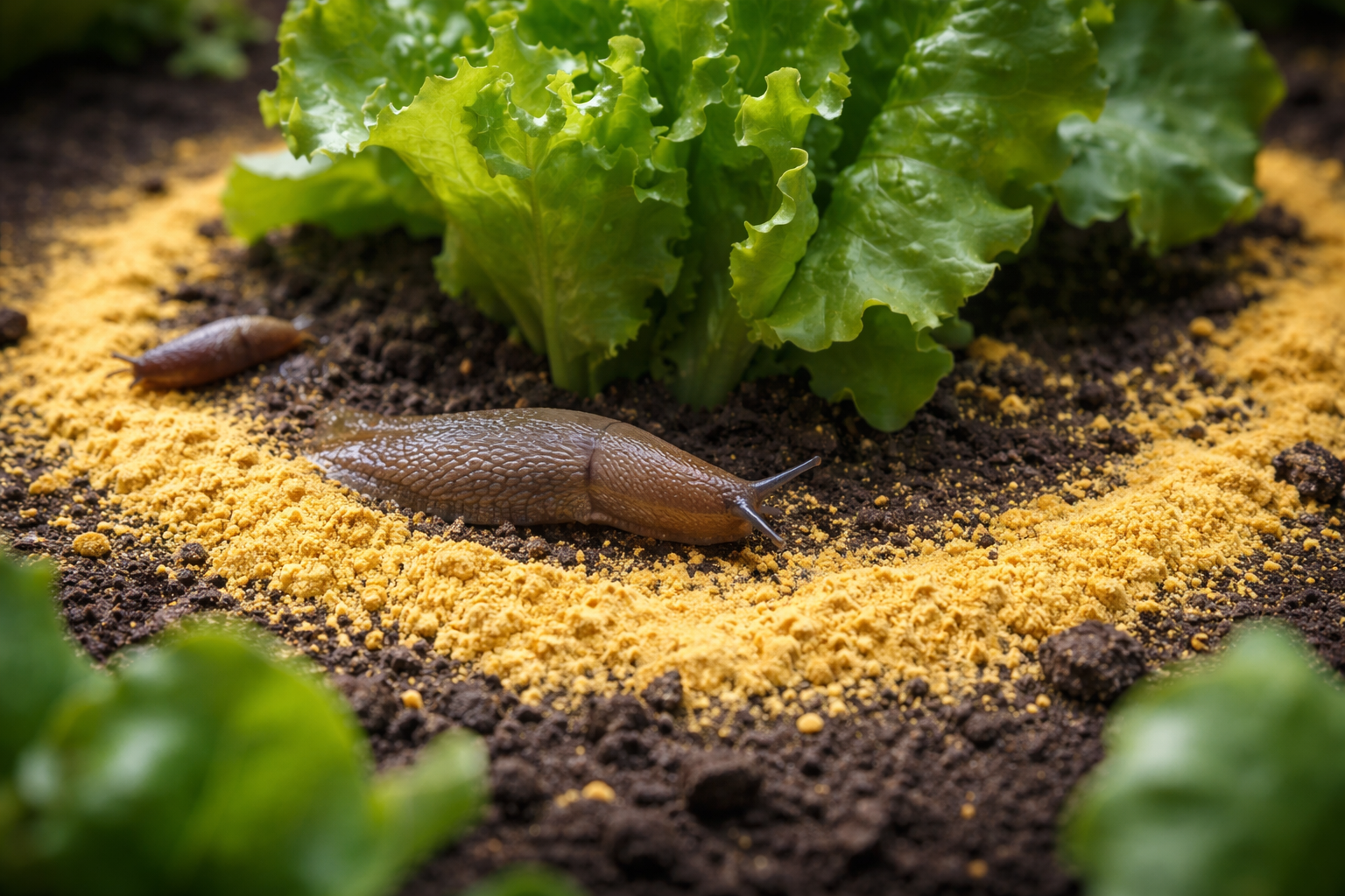 Rozsypywanie musztarda w proszku w ciasnym pierścieniu wokół każdej rośliny.