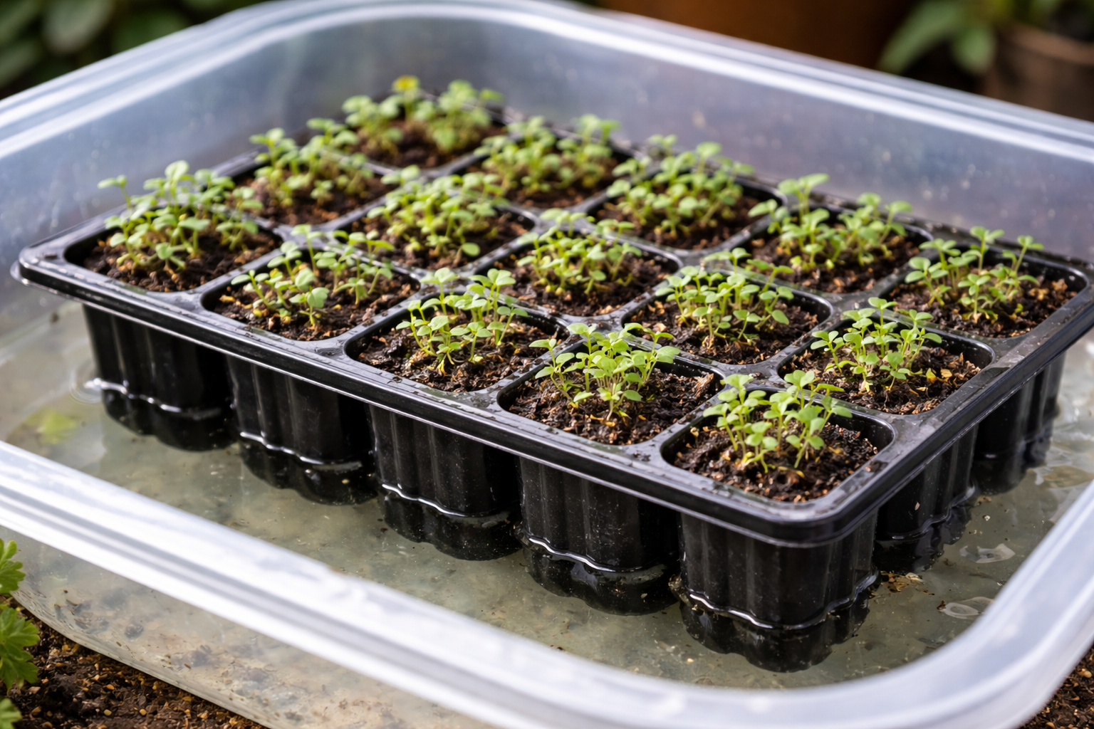 Aby uniknąć czarnej nóżki i jednoczesnego wysychania, stosuję taktykę podlewanie denne. Woda trafia bezpośrednio do korzeni, a powierzchnia gleby pozostaje umiarkowanie wilgotna, co zapobiega rozwojowi grzybów.