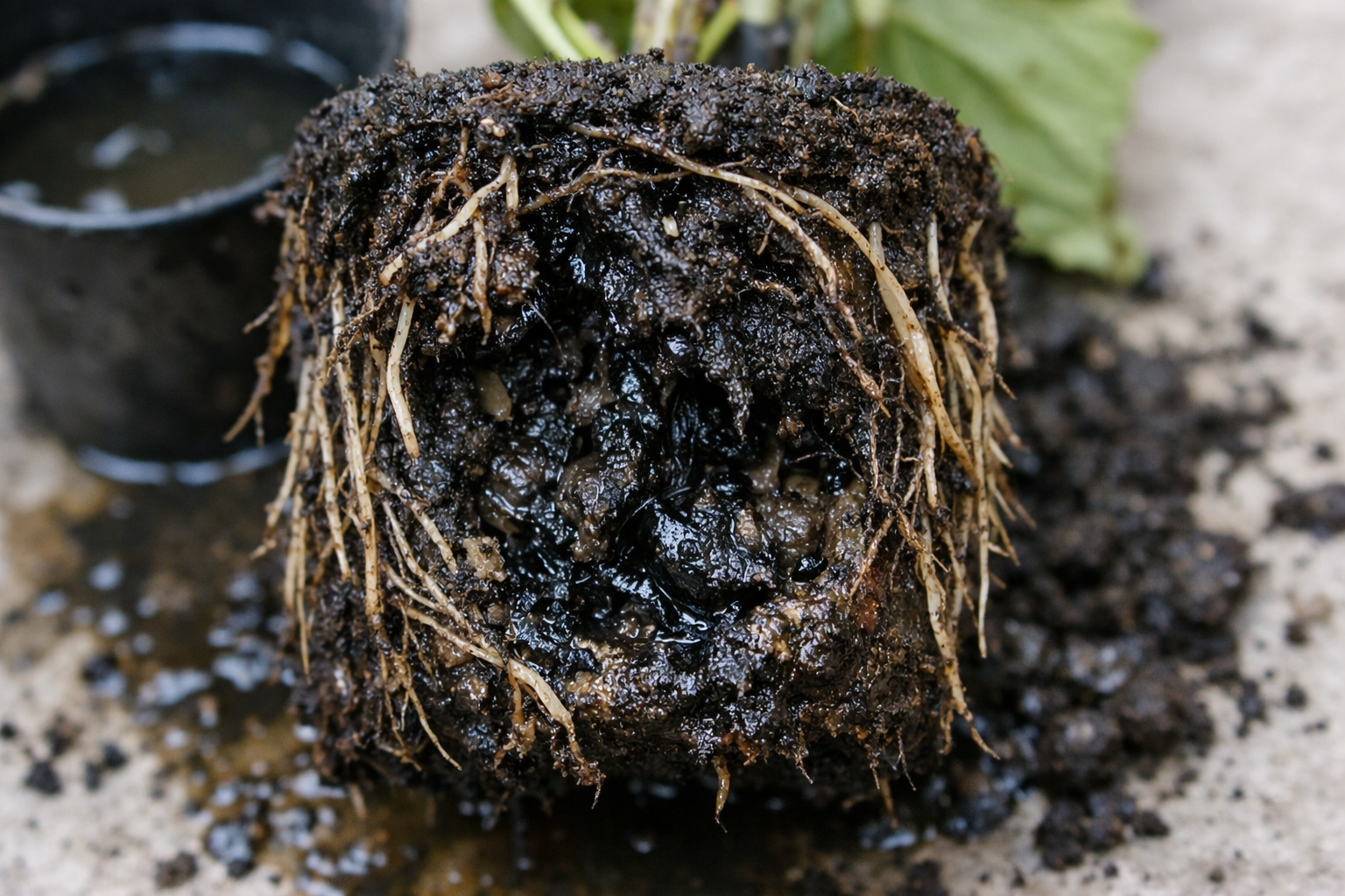 Tylko jeśli korzenie są nadal białe – należy natychmiast przesadzić roślinę do całkowicie suchej gleby.