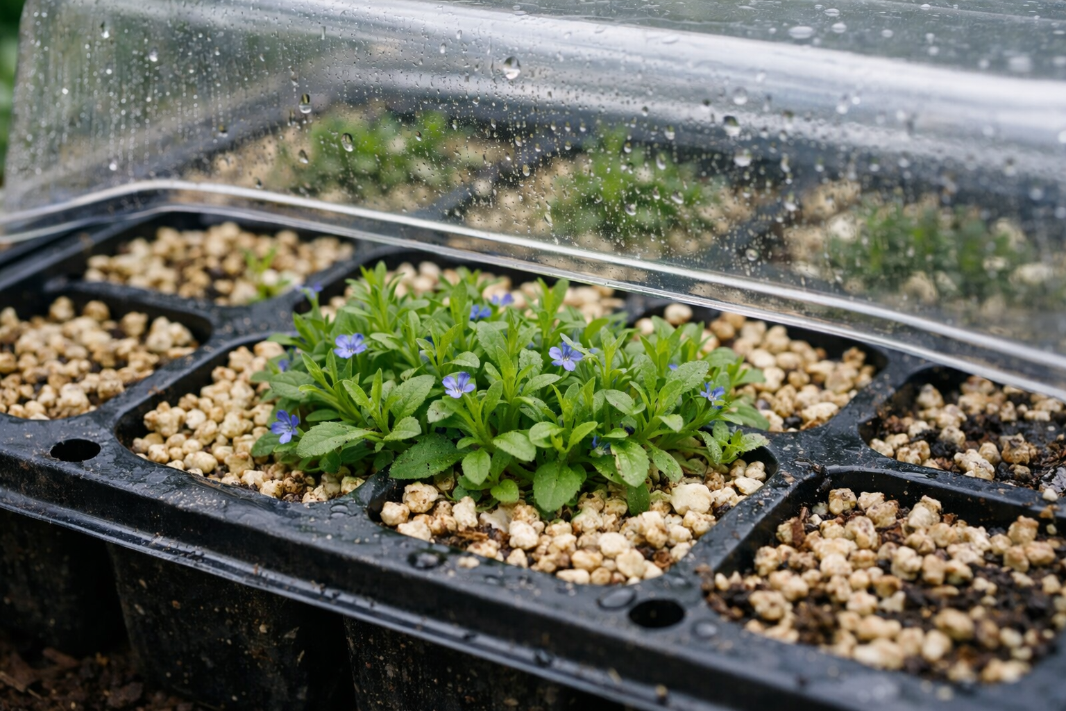 Mój sekretny niuans: jeśli lobelia zaczęła już więdnąć, przykryj kasetę przezroczystym kapturem na kilka godzin po podlaniu. Stworzy to efekt „mgły”, który pomoże słabym łodygom wchłonąć wilgoć przez pory liści i unieść się.