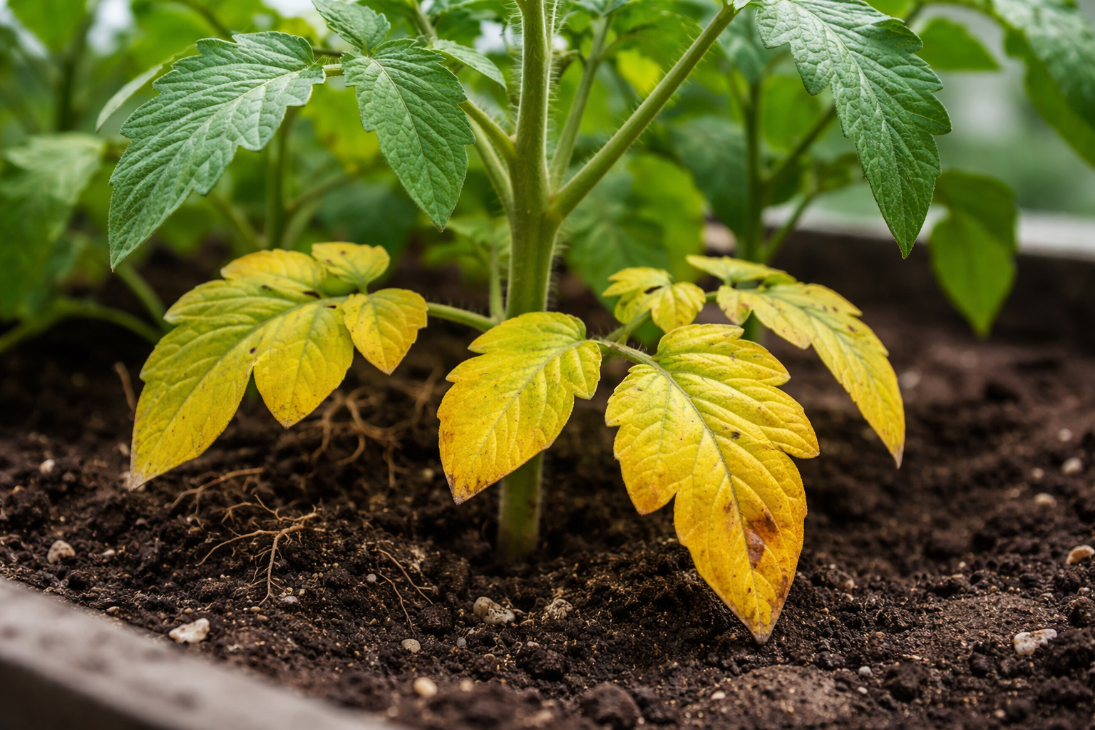 Żółknięcie dolnych liści pomidorów wskazuje na ukryty niedobór lub błąd w pielęgnacji