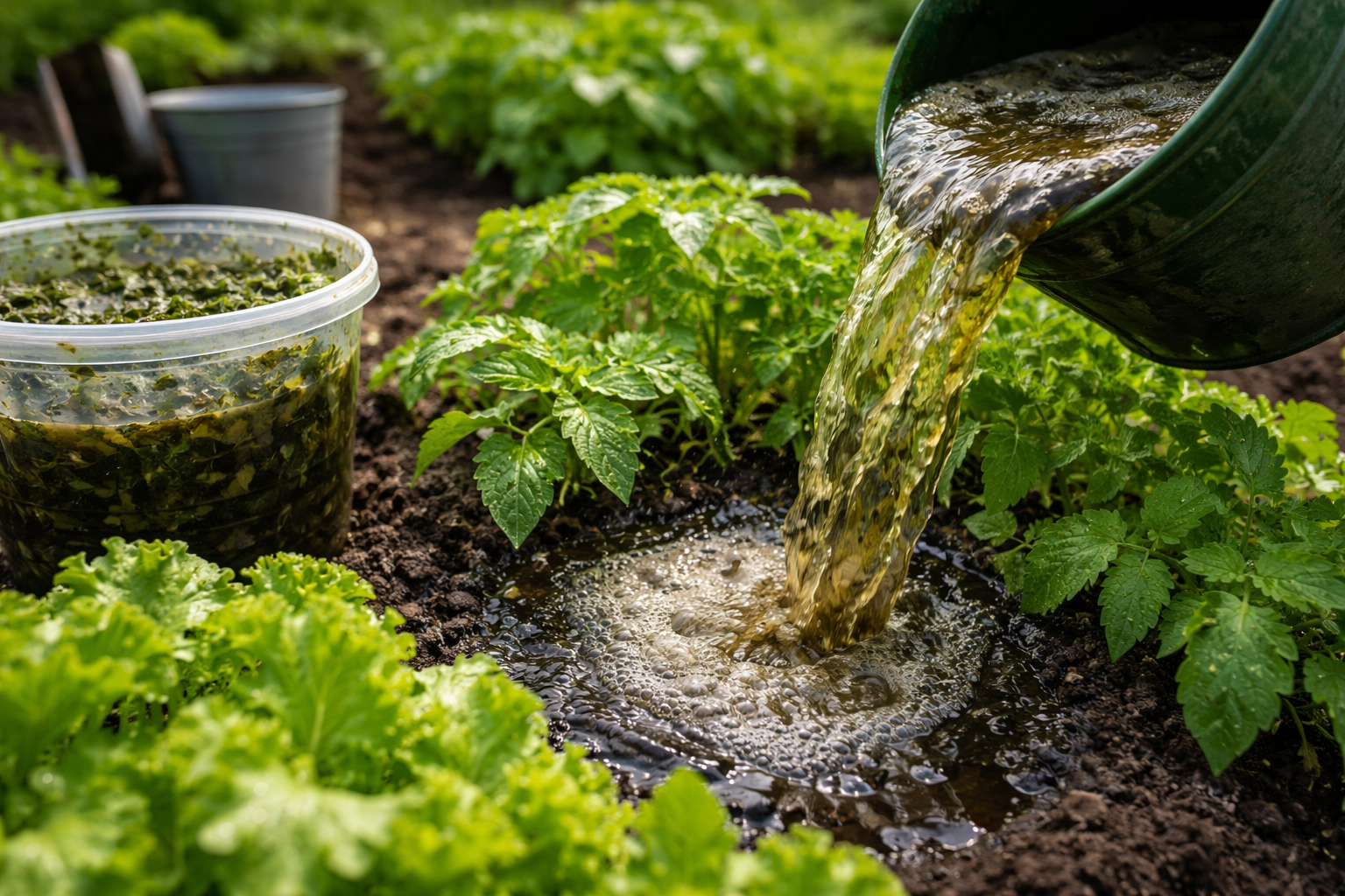 Ten napar jest uniwersalny, ale niektóre rośliny reagują na niego szczególnie gwałtownie. Wiosną upewniam się, że rozlewam go na grządkach warzywnych.