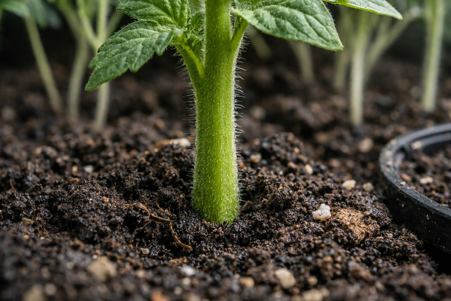 Kiedy pomidorom brakuje światła, uruchamia się mechanizm przetrwania. fototropizm. Roślina przeznacza wszystkie swoje zasoby na wzrost w górę, aby „dotrzeć” do źródła energii, ignorując rozwój korzeni i grubość łodygi. W cieniu komórki łodygi rozciągają się i stają się luźne, czyniąc sadzonkę podatną na choroby.