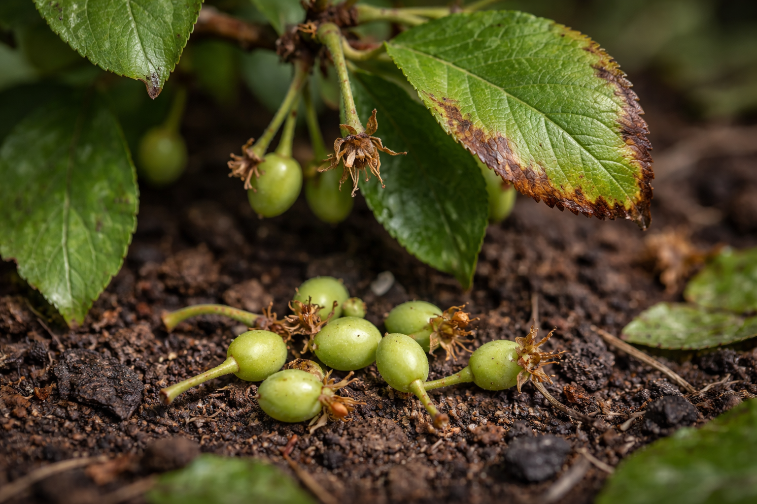 Obornik jest zdominowany przez azot, który może tylko zaostrzyć problem opadania owoców w przypadku niedoboru potasu.