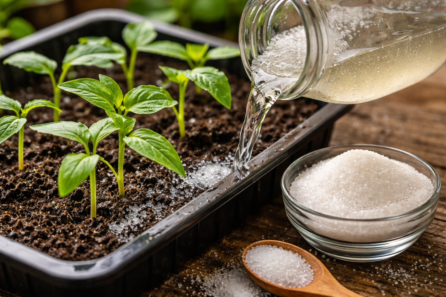 Ważny niuans: cukier działa skutecznie tylko w połączeniu z pożytecznymi bakteriami. Aby zapobiec pleśnieniu gleby, zawsze dodaję do roztworu preparat z technologią EM lub zwykłe drożdże. Bez nich cukier może spowodować zakwaszenie gleby.