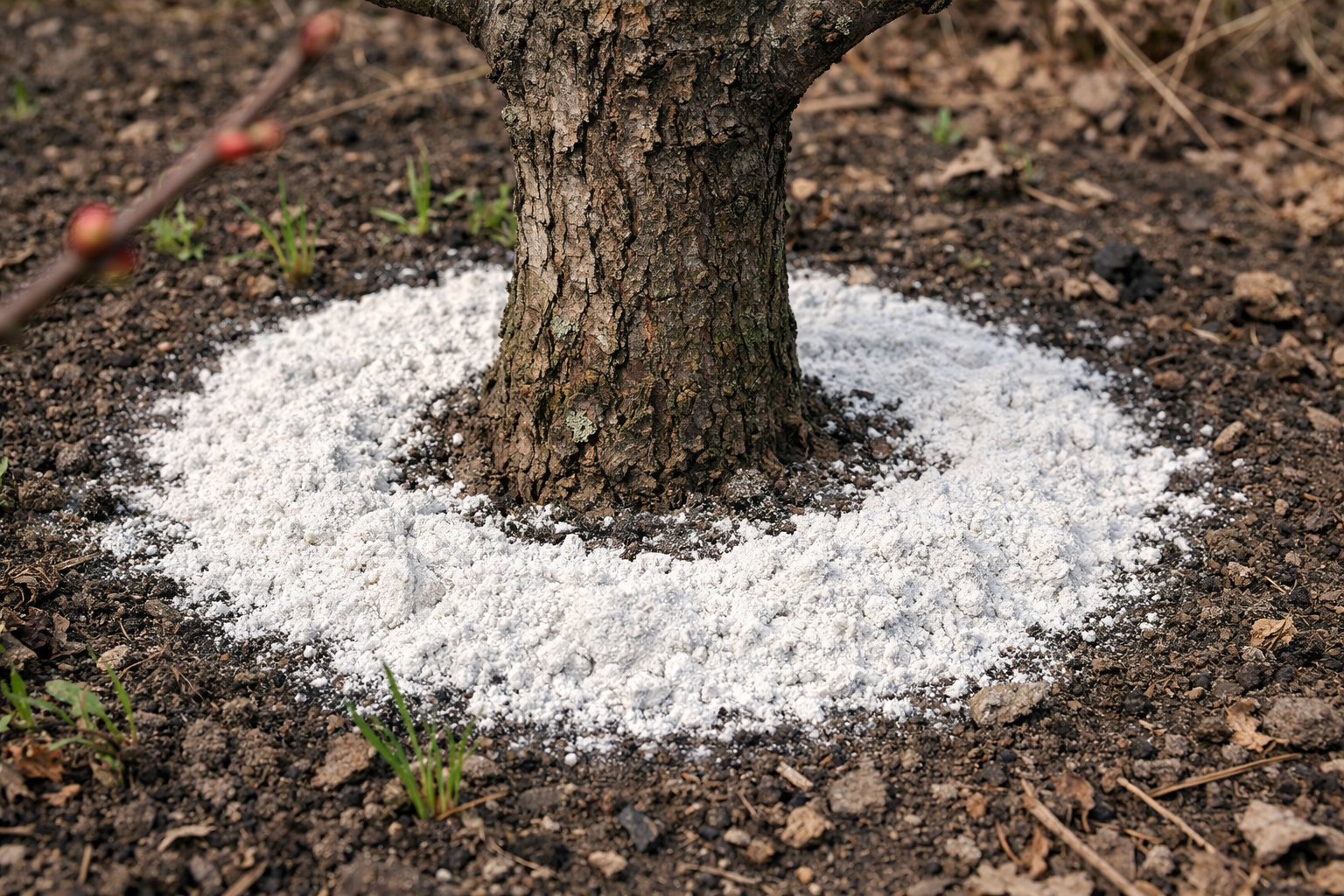 Najlepszym momentem na wykonanie zabiegu jest okres topnienia śniegu lub pierwsze dni po jego zejściu. Podłoże powinno być wilgotne. Proszek należy rozsypać równomiernie na całym obwodzie korony, nieco z dala od pnia.