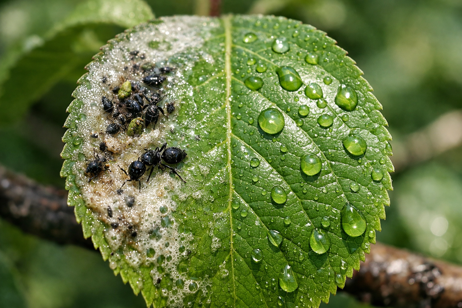 Tworzy nieusuwalną lepką warstwę na powierzchni liści.