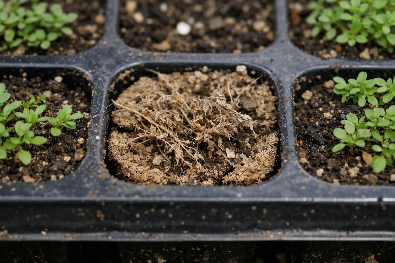 Często ogrodnicy mylą banalne wysychanie z niebezpiecznymi infekcjami. W ciasnych pomieszczeniach. kasety do sadzenia granica między niedoborem wody a podmokłością jest bardzo cienka, a ograniczona ilość ziemi natychmiast traci cenną wilgoć.
