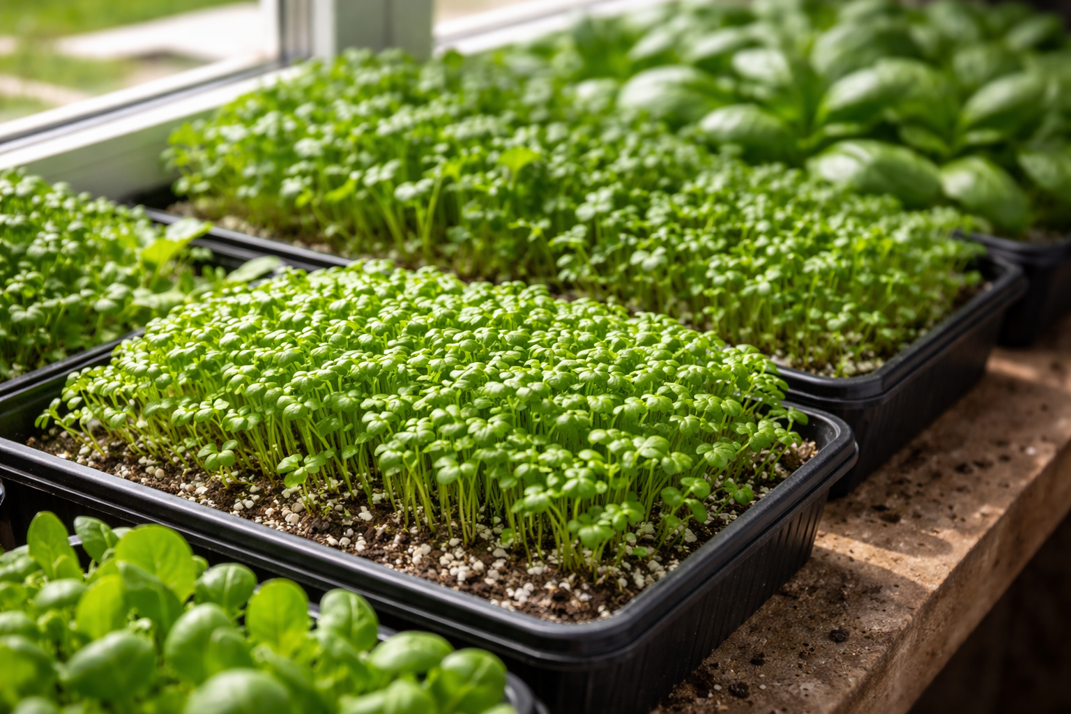 Sekret szybkiego startu tkwi w prawidłowym doborze nasion. Nie należy od razu przyjmować kapryśnych roślin, lepiej dać pierwszeństwo uprawom, które wybaczają błędy początkującym. Doskonale się prezentują rukiew wodna, musztarda liściowa и rukola. Mają wysoki wigor kiełkowania i tworzą gęstą czapkę już we wczesnych stadiach.