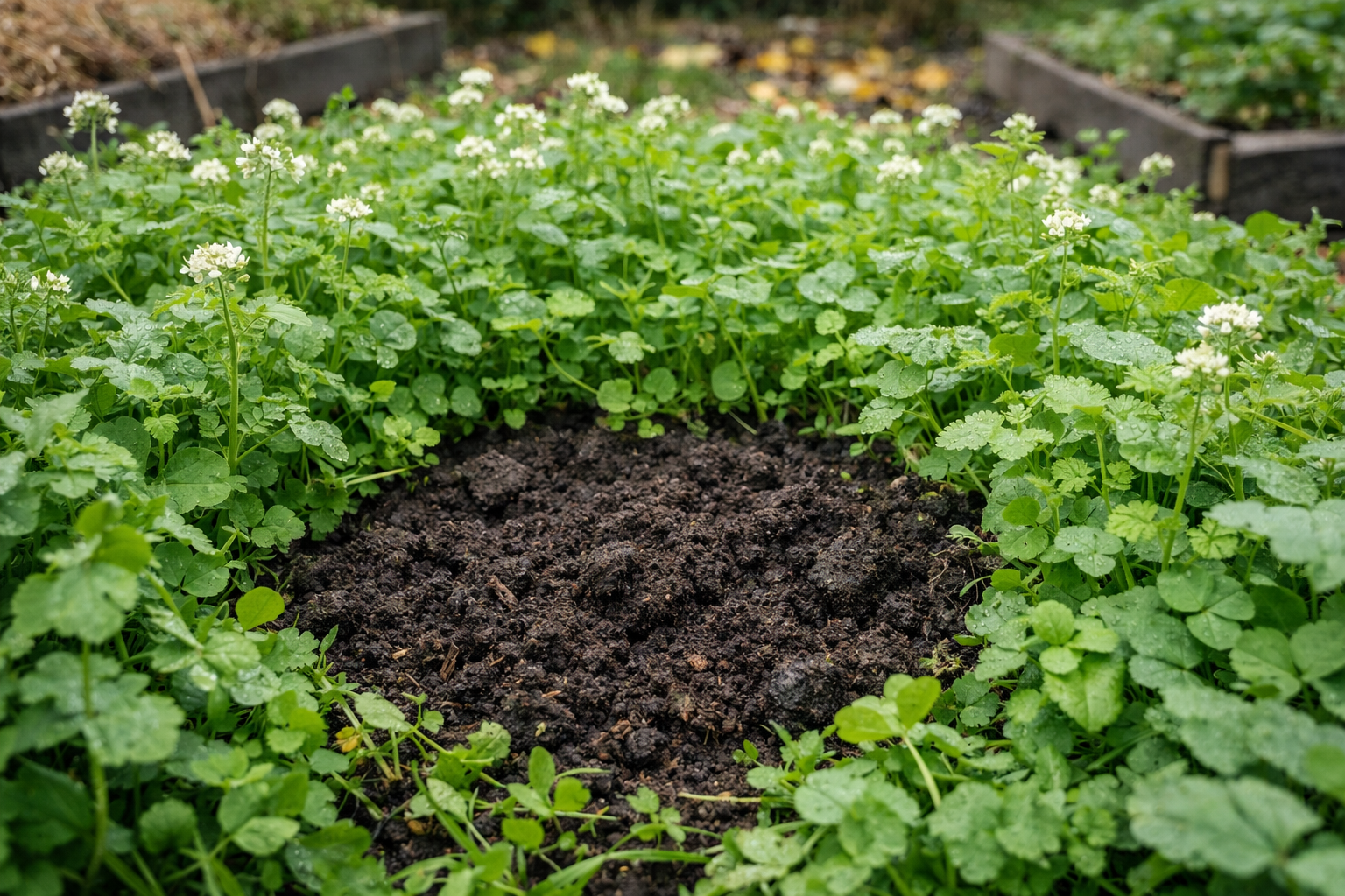 Gęsty wysiew nawozów zielonych jest w pełni porównywalny pod względem skuteczności do stosowania dobrej jakości ściółki.