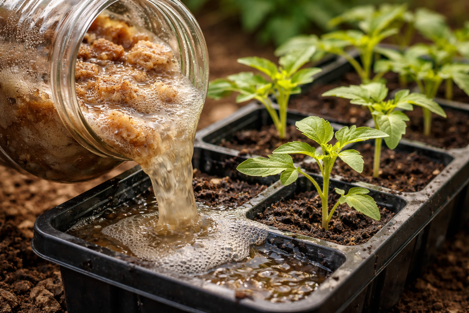 Pamiętaj, aby rozcieńczyć przygotowany koncentrat czystą wodą przed podlaniem, aby uniknąć poparzenia delikatnych młodych korzeni sadzonek.