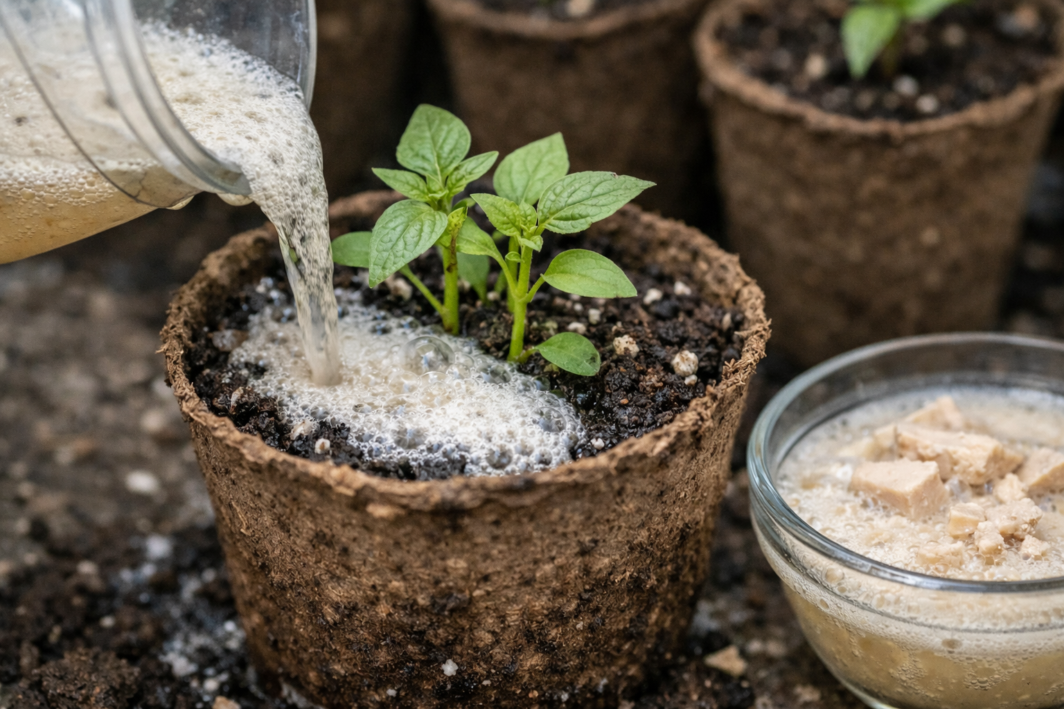 Nigdy nie używaj nierozcieńczonego koncentratu drożdżowego, w przeciwnym razie istnieje ryzyko poważnego przypalenia korzeni i całkowitego zabicia młodych kiełków.