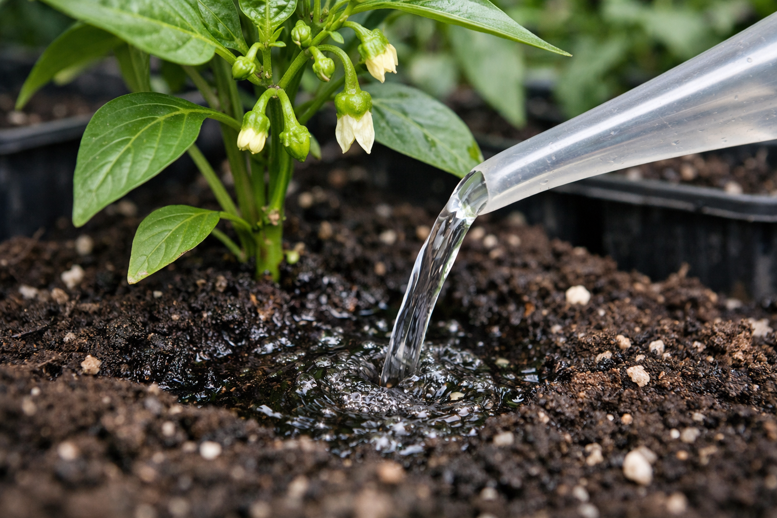 Glebę należy nawilżać w miarę wysychania jej wierzchniej warstwy, kategorycznie nie dopuszczając do jej całkowitego wyschnięcia.