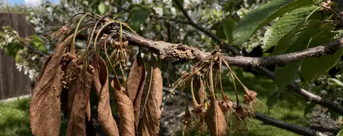 Ogrodnicy często mylą monilioza (monilial scald) ze zwykłym przemarzaniem pąków, ale konsekwencje są inne. Jeśli kwiaty wiśni nagle brązowieją wiosną